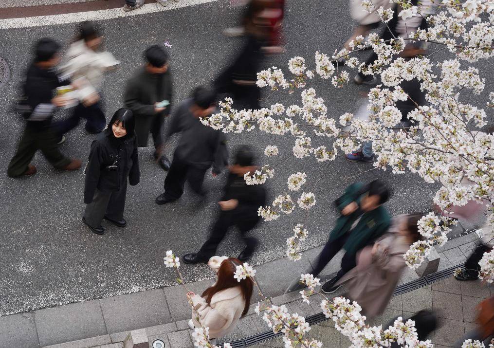 2025年3月30日,游客在日本首都东京目黑川畔赏樱。新华社记者贾浩成摄